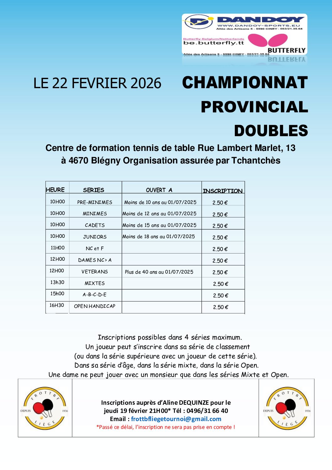 Championnat Provincial Doubles Calendrier Ajouter au calendrier Ajouter au calendrier Timely Ajouter à Google Ajouter à Outlook Ajouter au calendrier Apple Ajouter à un autre calendrier Exporter vers XML Quand : 22 février 2026 Jour entier 2026-02-22T00:00:00+01:00 2026-02-23T00:00:00+01:00