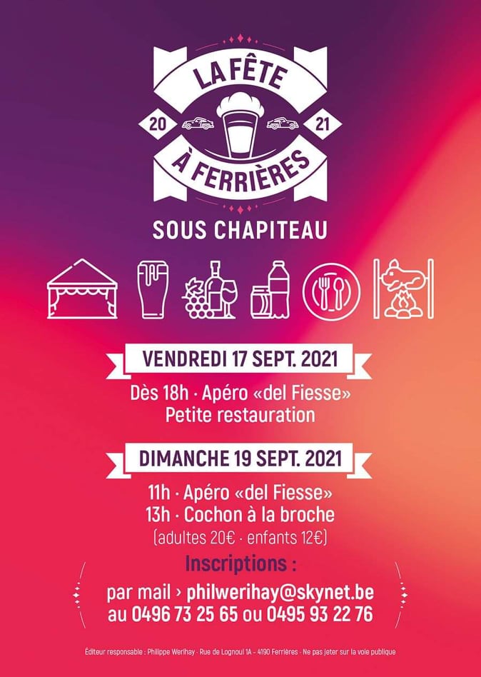 FERRIERES – Fête au village Calendrier Ajouter au calendrier Ajouter au calendrier Timely Ajouter à Google Ajouter à Outlook Ajouter au calendrier Apple Ajouter à un autre calendrier Exporter vers XML Quand : 17 septembre 2021 – 19 septembre 2021 Jour entier 2021-09-17T00:00:00+02:00 2021-09-20T00:00:00+02:00 Autres événements