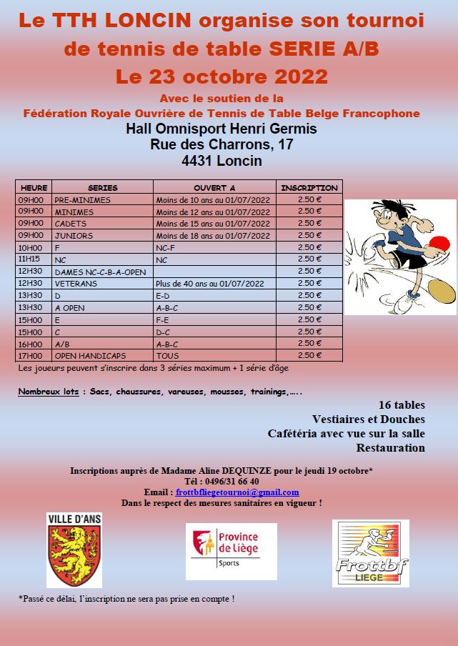 Tournoi de LONCIN – « A » Calendrier Ajouter au calendrier Ajouter au calendrier Timely Ajouter à Google Ajouter à Outlook Ajouter au calendrier Apple Ajouter à un autre calendrier Exporter vers XML Quand : 23 octobre 2022 Jour entier 2022-10-23T00:00:00+02:00 2022-10-24T00:00:00+02:00 Tournois Le-TTH-LONCIN-organise-son-Tournoi-SERIE-A-2022